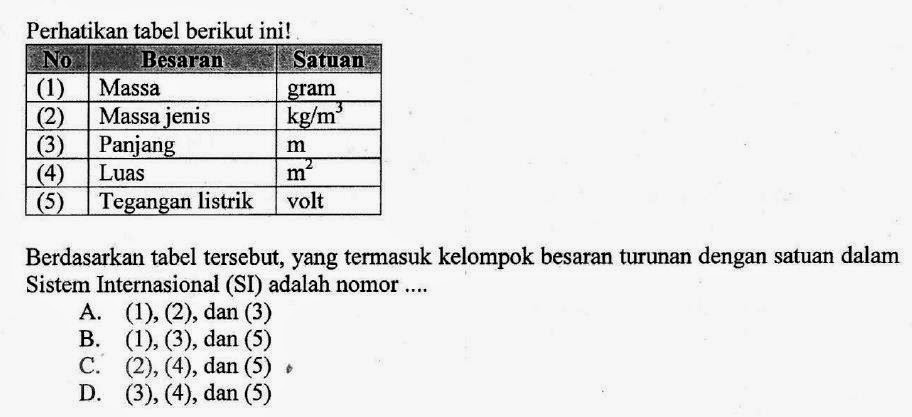 Besaran Pokok Besaran Turunan Satuan Internasional Soal Dan Jawaban Un 2013 Gurumuda Net