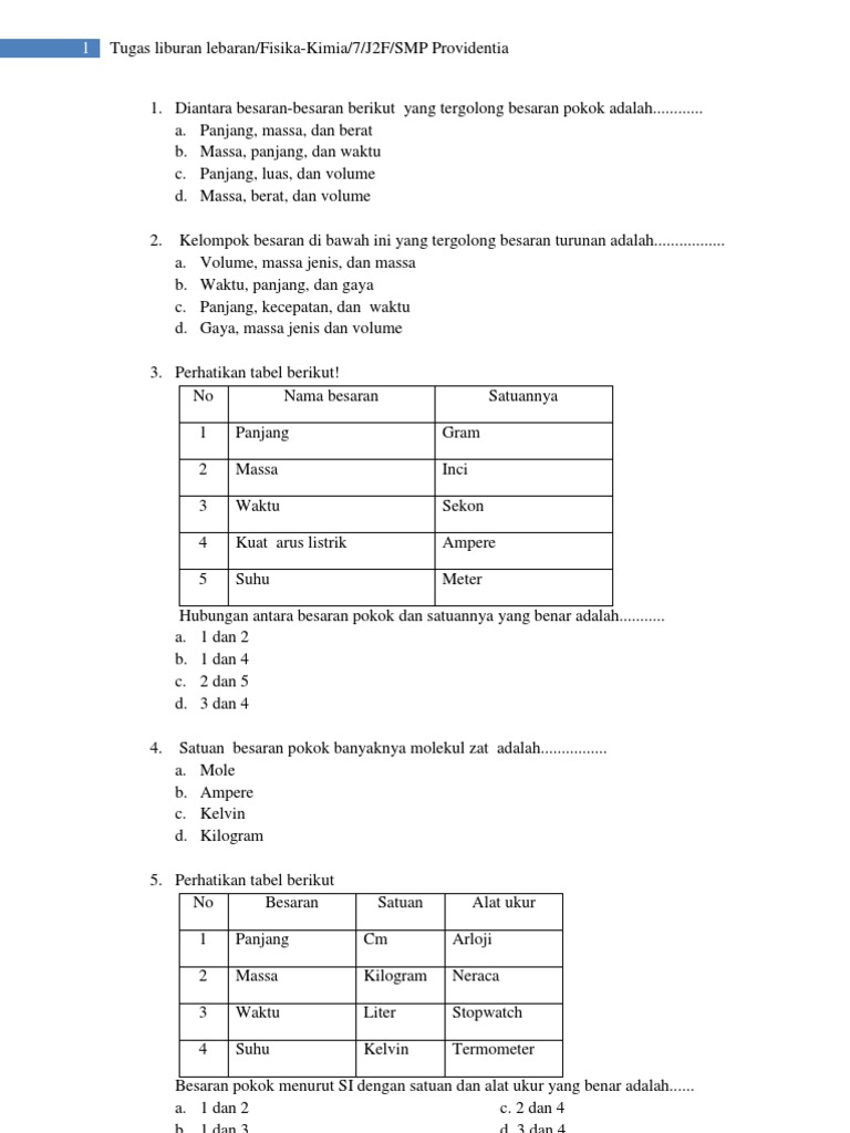 Doc Oal Soal Pengukuran Besaran Dan Satuan Plus Kunci Jawaban Chul Reffaydệrs Academia Edu