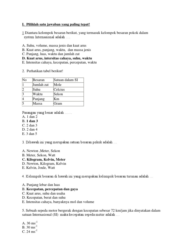 Besaran Pokok Besaran Turunan Satuan Internasional Soal Dan Jawaban Un 2013 Gurumuda Net