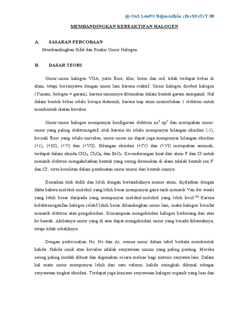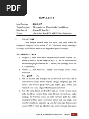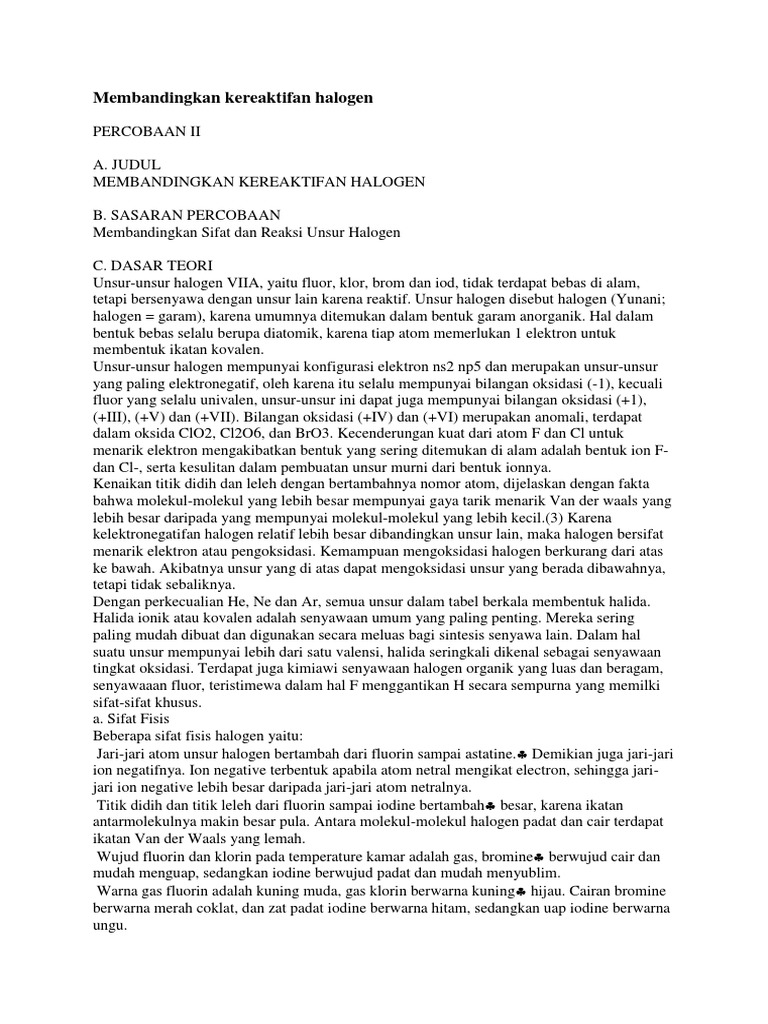 B Sifat Fisis Dan Sifat Kimia Unsur Unsur Gas Mulia Halogen Alkali Alkali Tanah Periode 3 Dan Periode 4 Dewita Triani Putri
