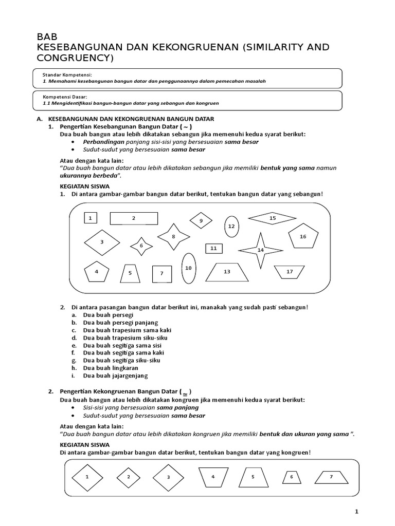 Workshop Matematika Materi Pelajaran Matematika Kelas 9 Bab 1 Kesebangunan Dan Kekongruenan