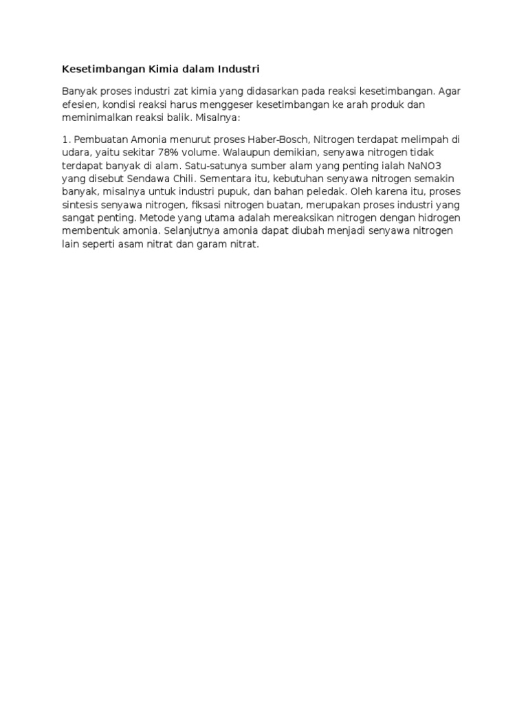 Kesetimbangan Kimia Dalam Industri Berbagi Tulisan Kecil