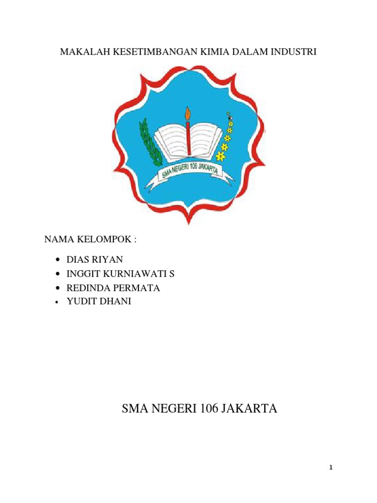 Makalah Kesetimbangan Kimia Dalam Industri Sma Negeri 106 Jakarta