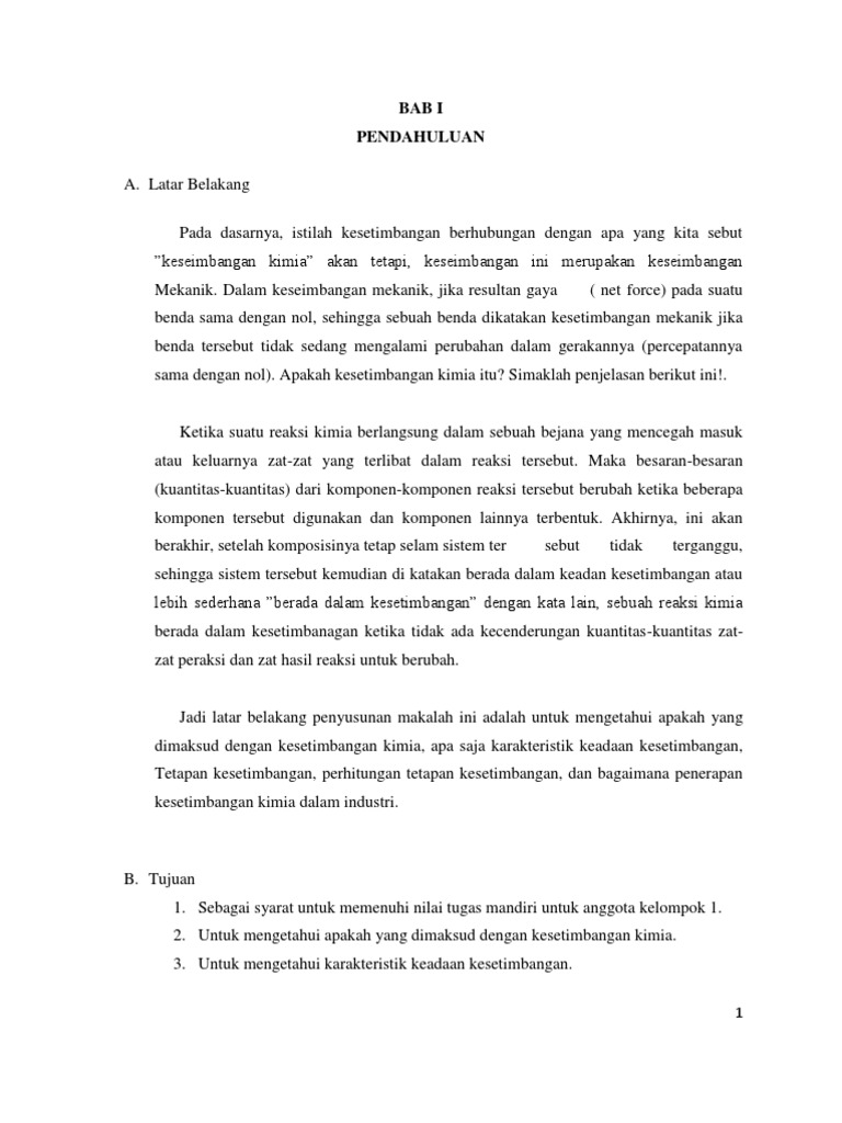 Kesetimbangan Kimia Docx Bab I Pendahuluan A Latar Belakang Pada Dasarnya Istilah Kesetimbangan Berhubungan Dengan Apa Yang Kita Sebut U201dkeseimbangan Course Hero