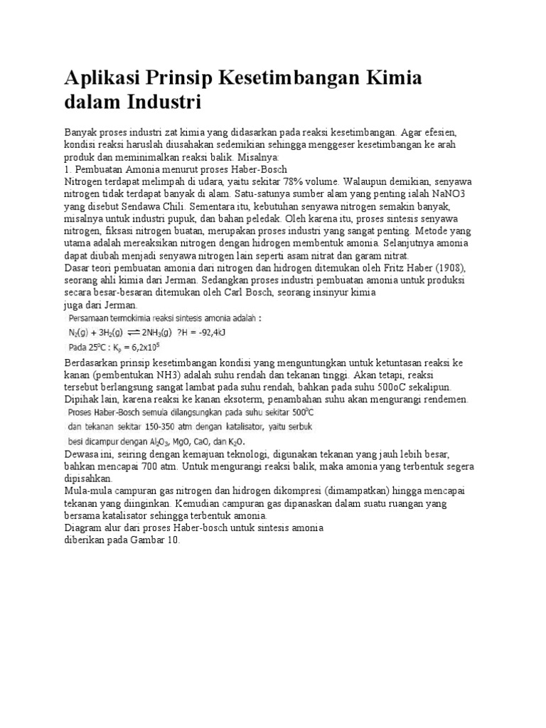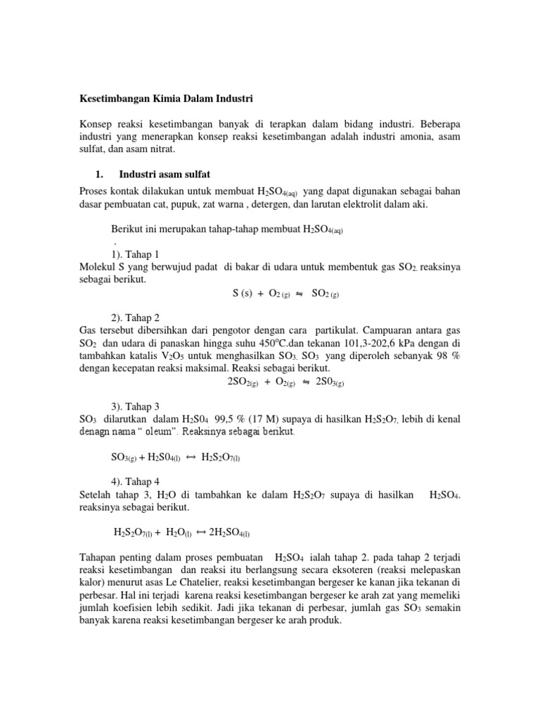 Doc Contoh Aplikasi Kesetimbangan Kimia Dalam Industri Fadilah Muthia Ulfa Academia Edu