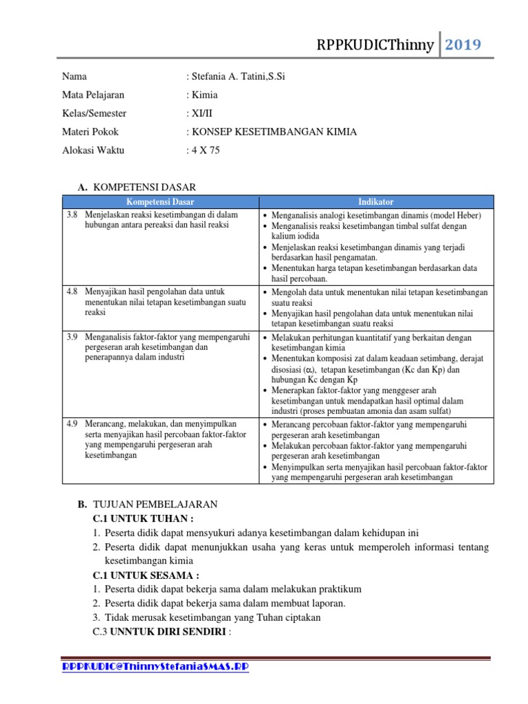 Doc Rpp K13 Faktor Faktor Pergeseran Kesetimbangan Kimia Dengan Model Pembelajaran Inqury Febrina Santa Theresia Siregar Academia Edu