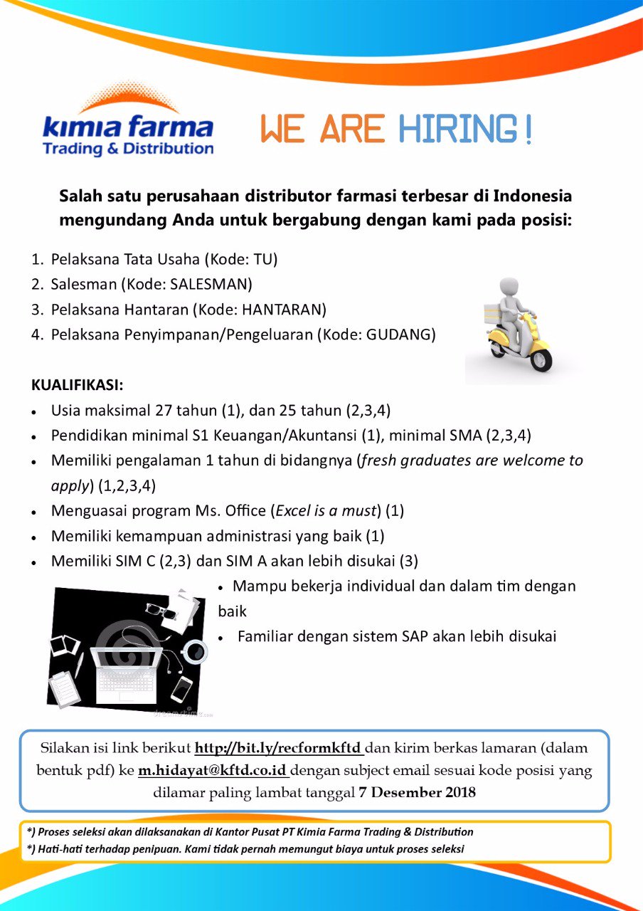Lowongan Pt Kimia Farma Trading Distribution Minimal Pendidikan S1 Semuar Jurusan Rekrutmen Lowongan Kerja Bulan Oktober 2020