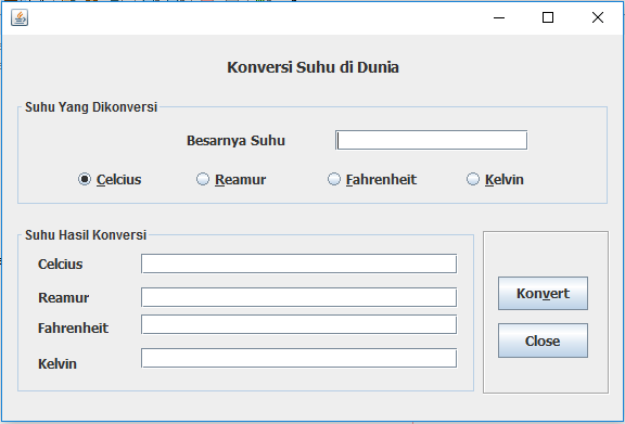 Aplikasi Konvert Suhu Menggunakan Java Tutorialswb Belajar Bahasa Pemrograman Php