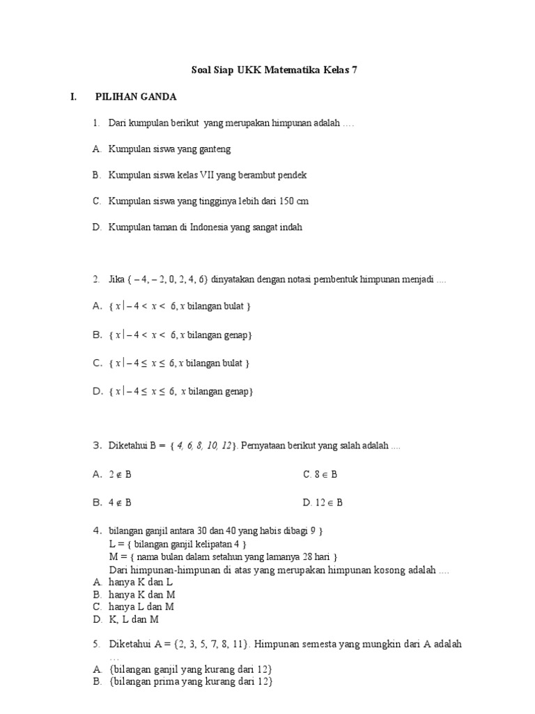 Soal Dan Kunci Jawaban Pas Matematika Smp Kelas 7 Kurikulum 2013 Tahun Pelajaran 2019 2020 Didno76 Com