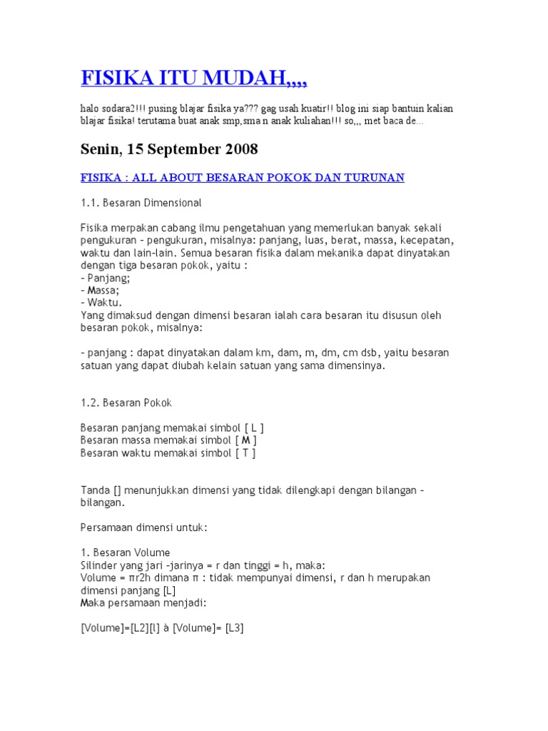 Rumus Besaran Turunan Pengertian Dan Tabel Besaran Turunan