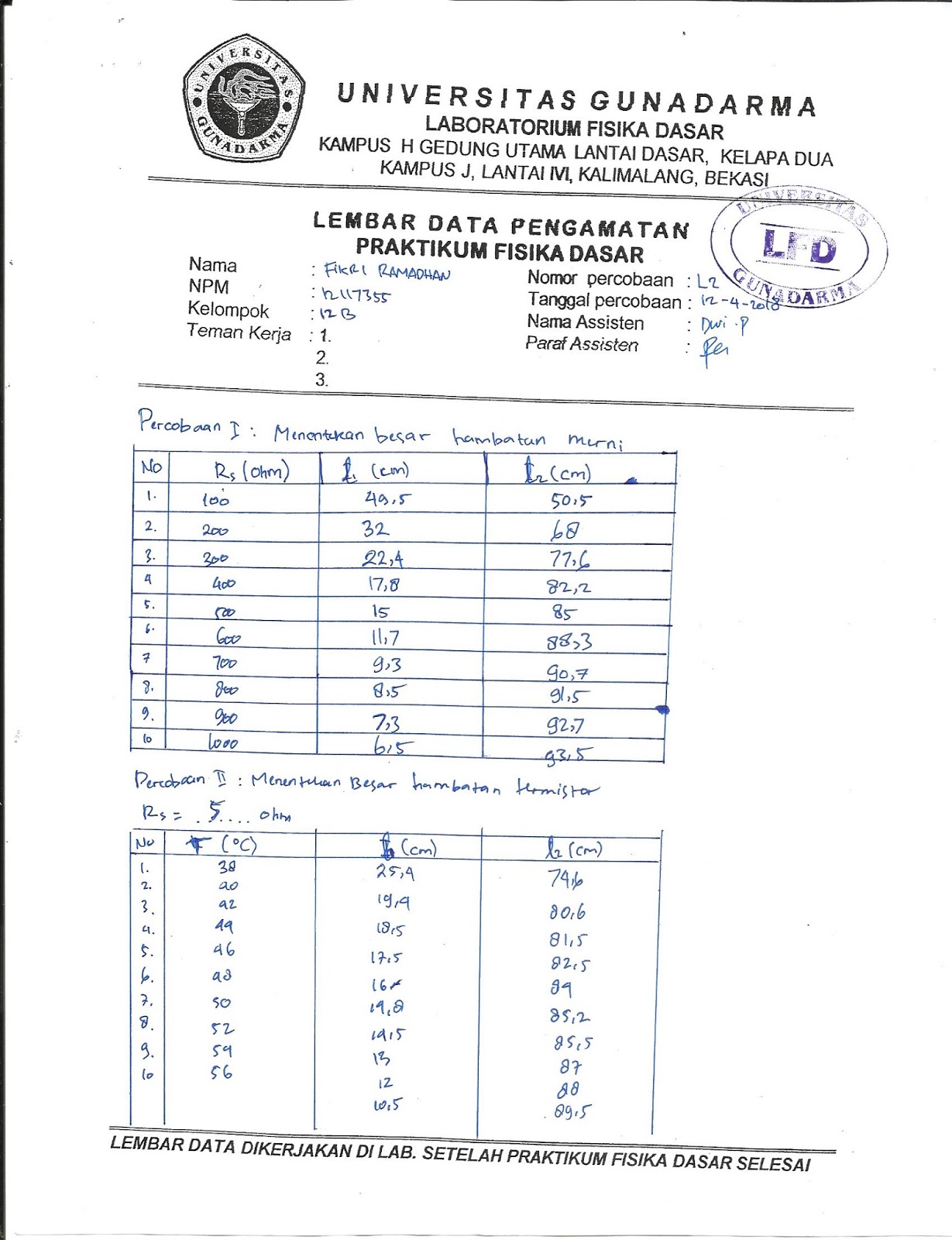 Laporan Praktikum Fisika Dasar 2 Pdf Document