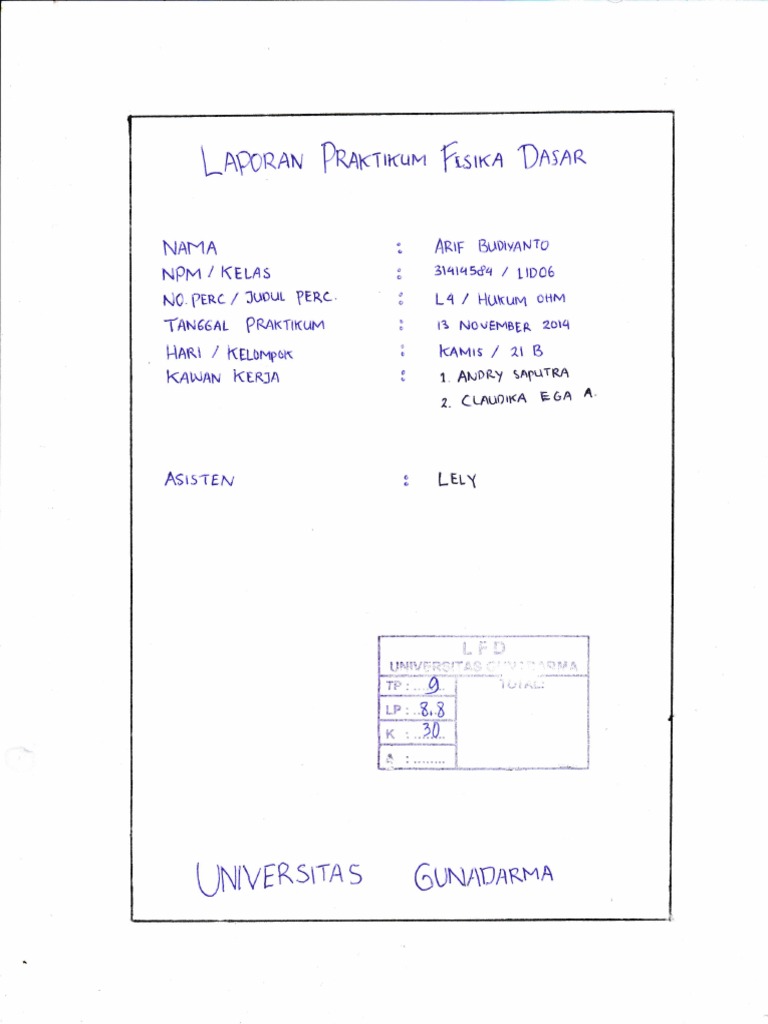 Cover Laporan Praktikum Fisika Dasar 2015 Pdf Laporan Praktikum Fisika Dasar Hantaran Listrik Dalam Kawat L1 Nama Nim Kelas Praktikum Hari Tgl Jam Course Hero