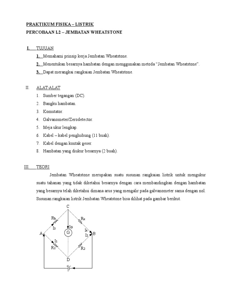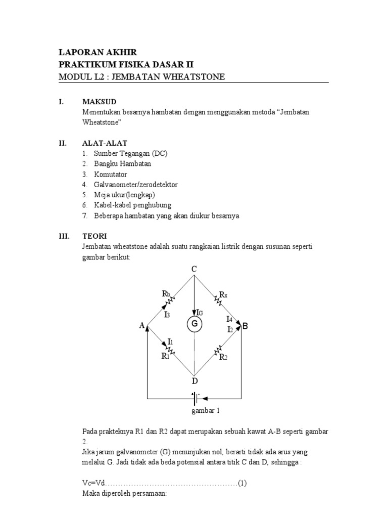 Doc Laporan Praktikum Fisika Jembatan Wheatstone Docx Siti Karomah Academia Edu