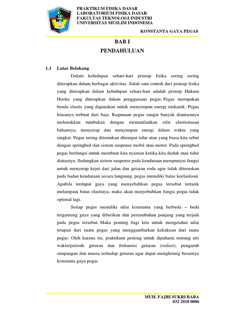 38577404 Laporan Praktikum Fisika Dasar I Hukum Hooke Pdf Document
