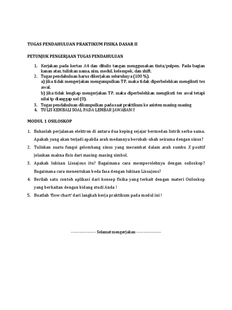 Jawaban Tugas Pendahuluan Praktikum Fisika Dasar 2 Guru Ilmu Sosial