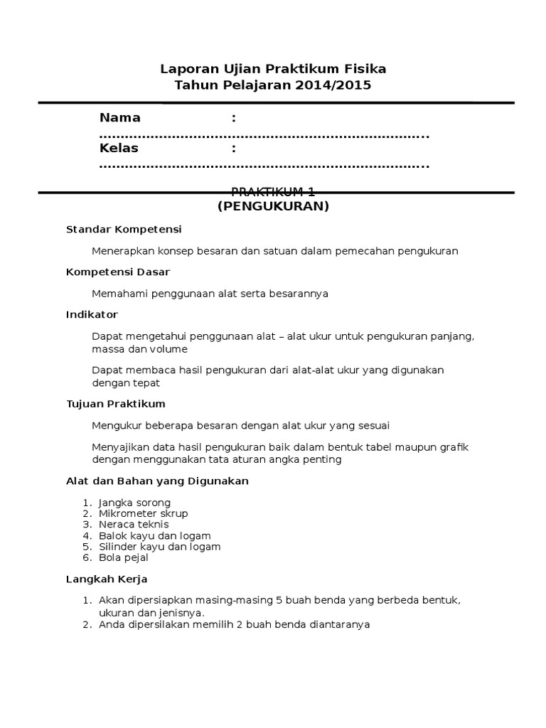 Contoh Laporan Praktikum Fisika Dasar Pengukuran Dan Kesalahan Kumpulan Contoh Laporan