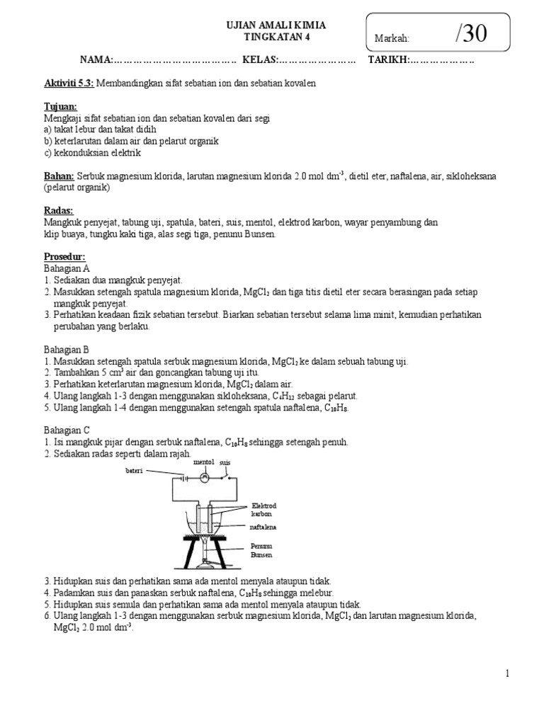 Dunia Sains Saya Pentaksiran Kemahiran Saintifik Pks Kimia Tingkatan 4 10 Eksperimen Tingkatan 5 5 Eksperimen Update 1 2 Kategori Amali A Amali Dengan Hipotesis Max 20m