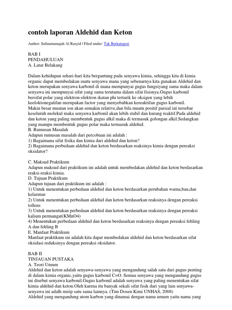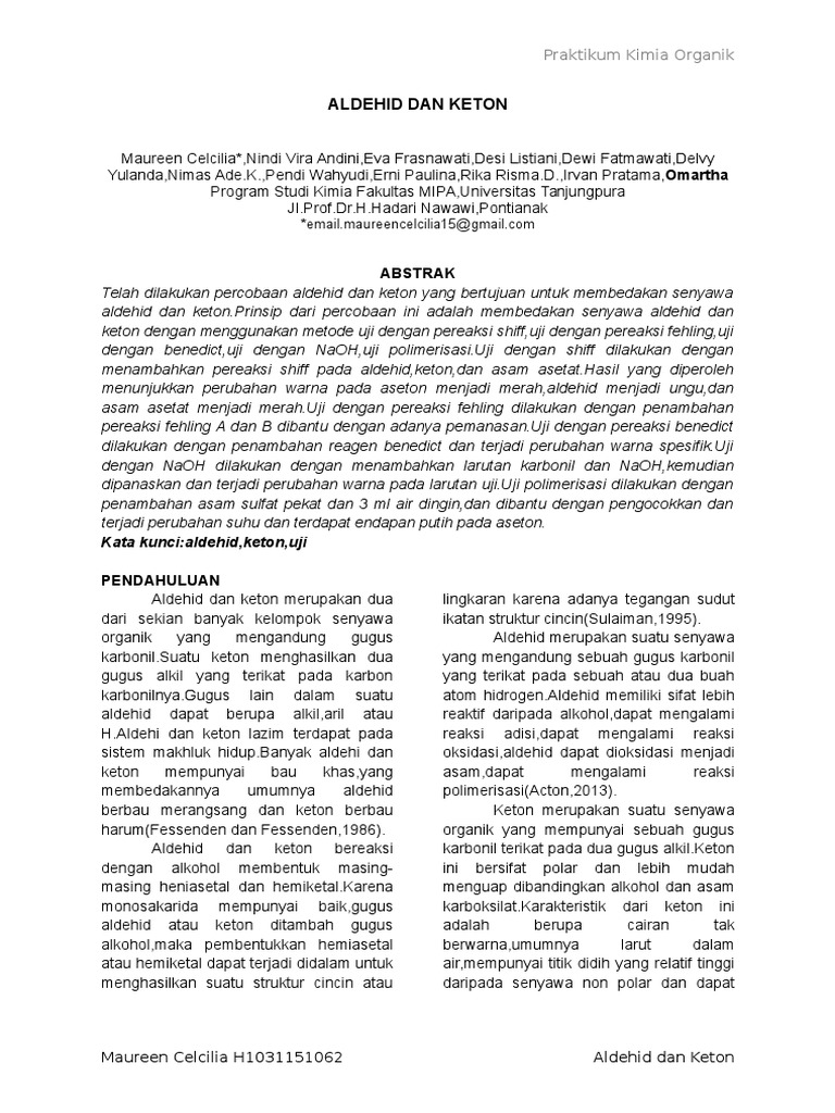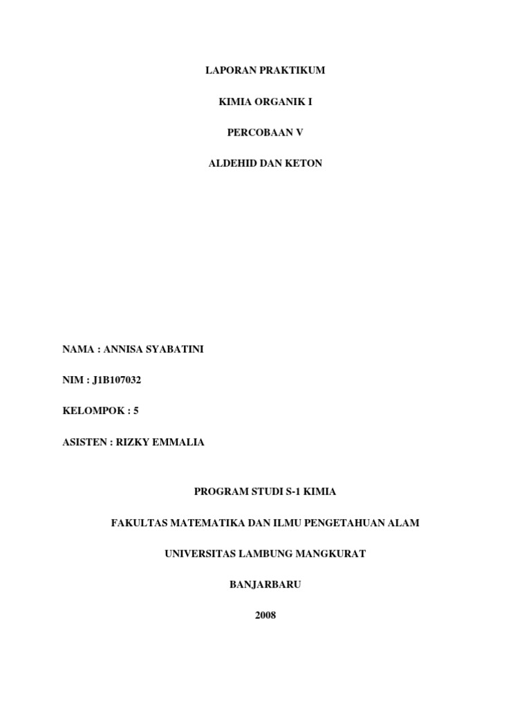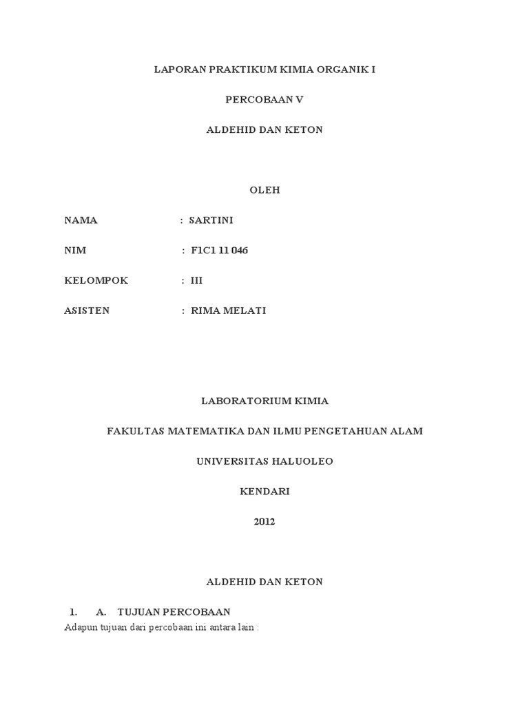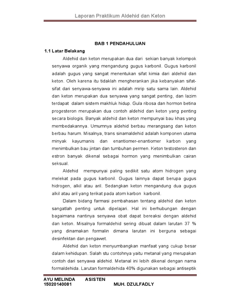 Pembahasan Modul 6 Doc Laporan Praktikum Kimia Organik Aldehid Keton Sifat Fisik Dan Reaksi Kimia Laporan Praktikum Kimia Organik Percobaan 08 Aldehid Course Hero