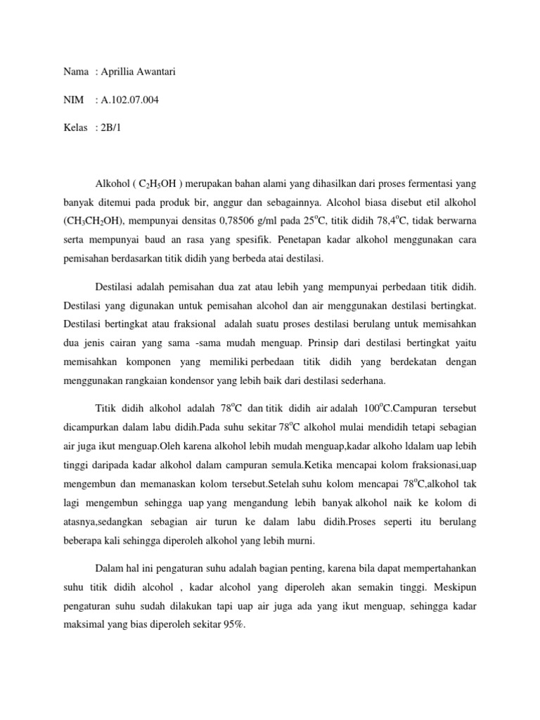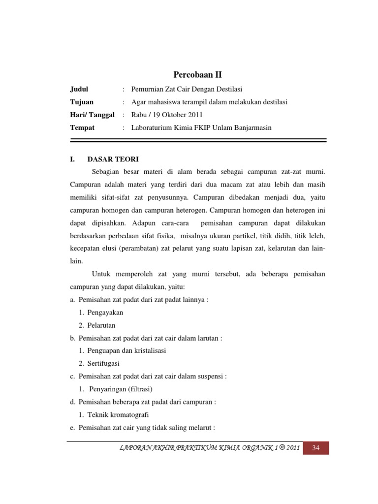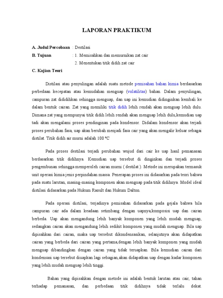 Laporan Praktikum 1 Laporan Praktikum Kimia Organik Pemisahan Pemurnian Zat Cair Distilasi Dan Titik Didih Nama Harits Majiid Nim 13014089 Kelompok 7 Course Hero
