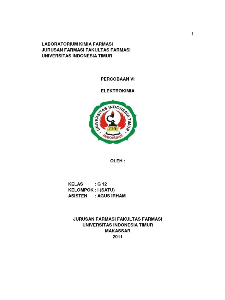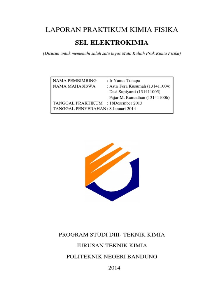 Laporan Elektrokimia Docx Laporan Praktikum Kimia Fisika Elektrokimia Oleh Kelompok Iii Kelas B Ahmad Dedi Fadillah 1407120814 Al Swendo Musbar Course Hero