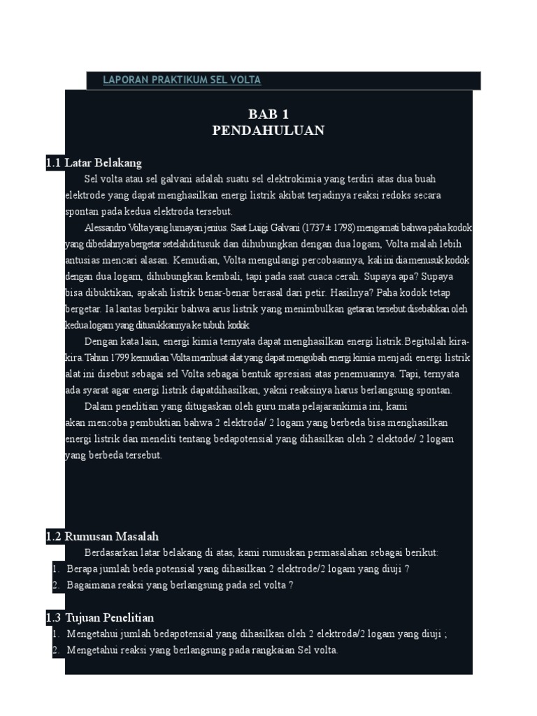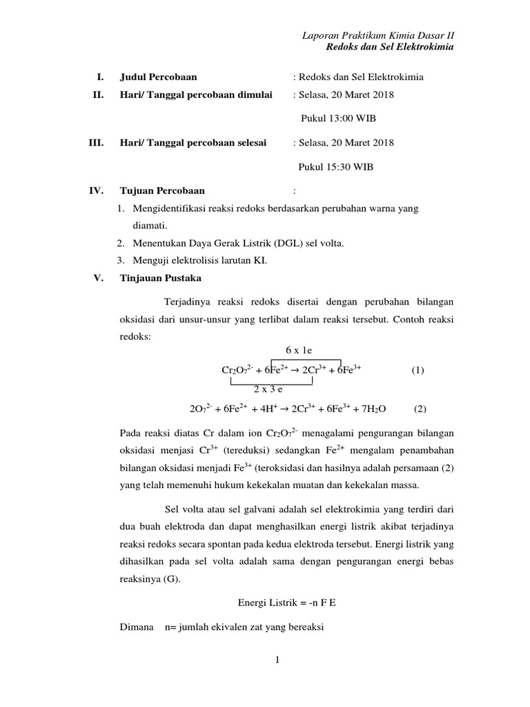 Laporan Praktikum Kimia Dasar Ii Sel Galvani Nbsp Laporan Praktikum Kimia Sel Ini Dapat Merubah Energi Kimia Menjadi Energi Elektrode Mana Yang Disebut Katode Atau Anode Didasarkan Pada Tipe Reaksi Kimia