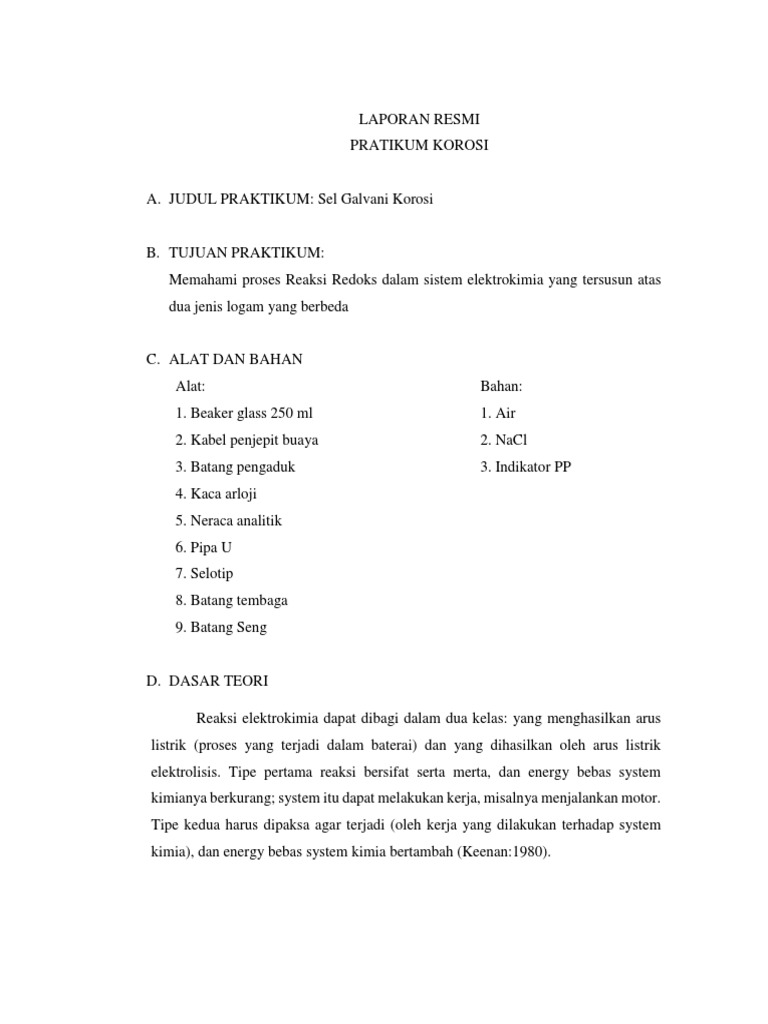 Chemistry By Alex P I P Laporan Praktikum Redoks Dan Elektrokimia Korosi