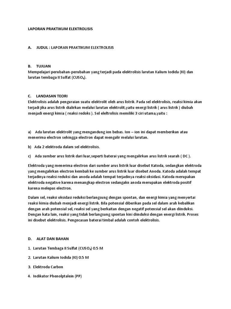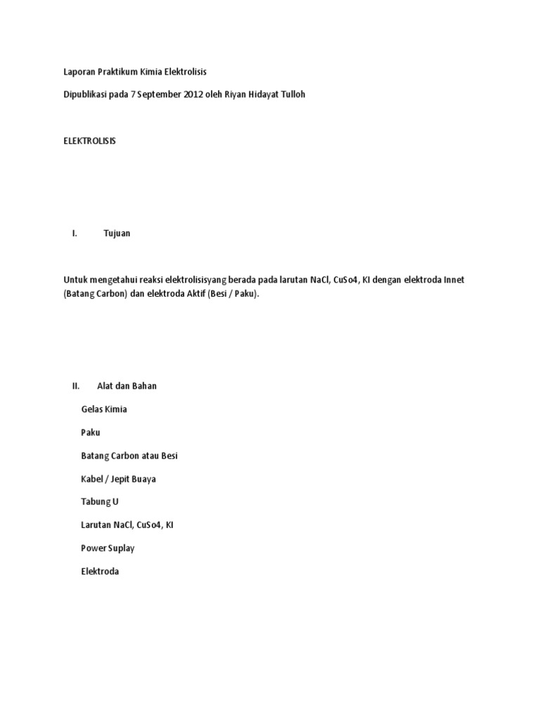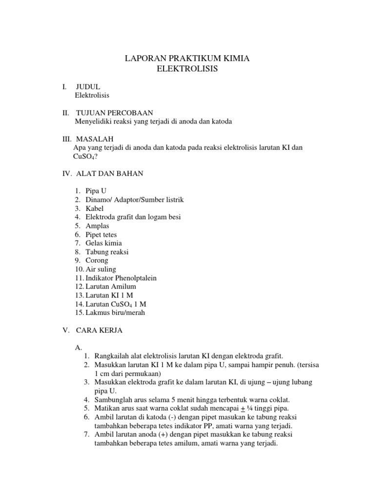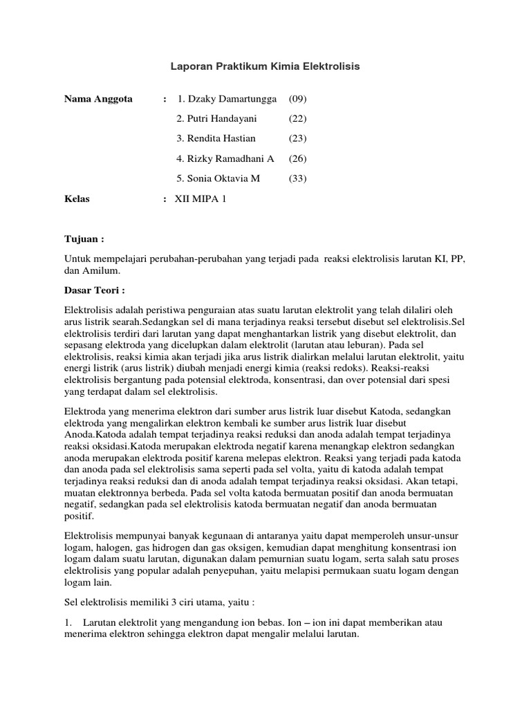Doc Laporan Praktikum Kimia Reaksi Elektrolisis Disusun Oleh Sma Negeri 1 Kebumen Dhia Amalina Hanifa Academia Edu