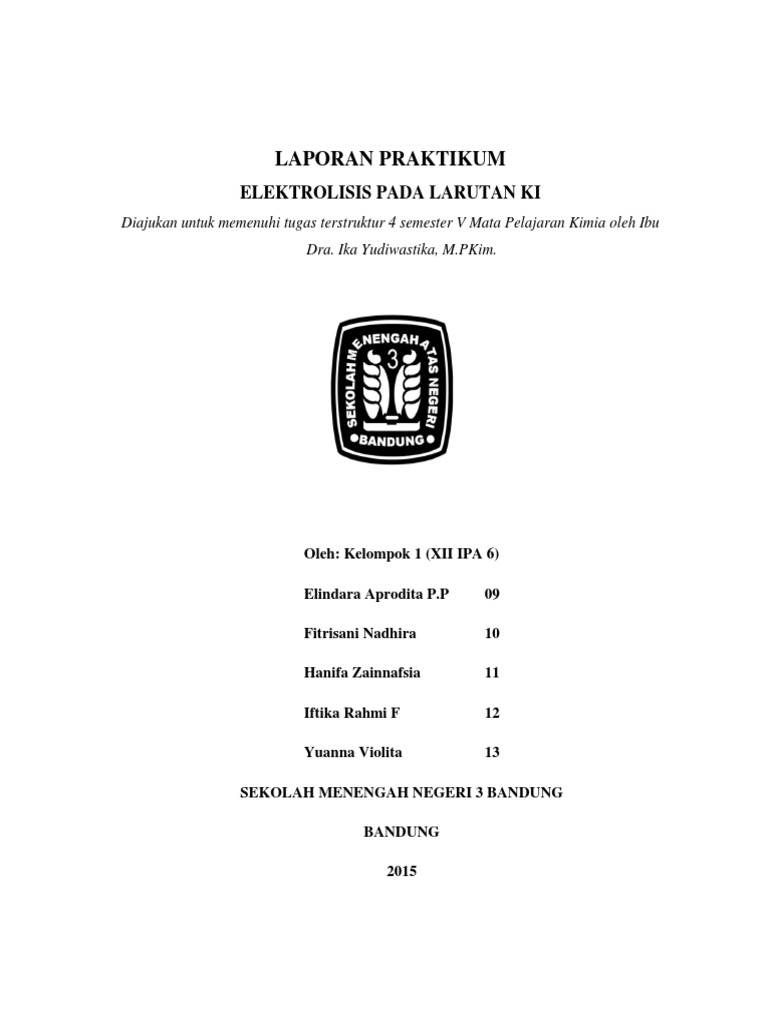Dwika Martharina Laporan Praktikum Kimia Elektrolisis Kalium Yodida