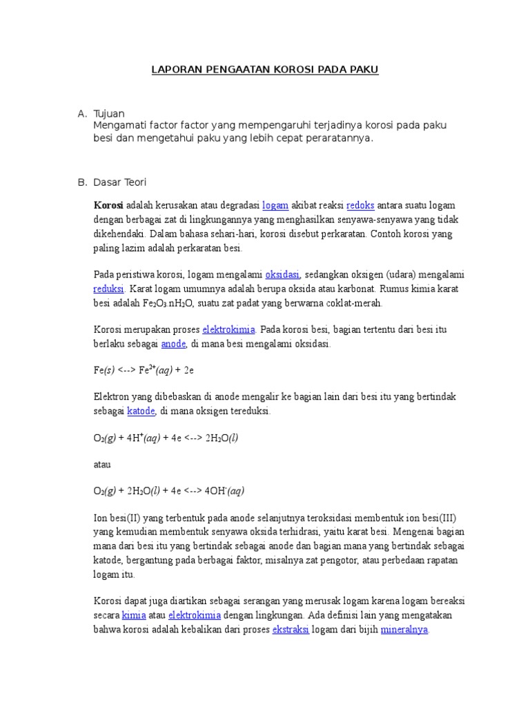 Doc Laporan Praktikum Korosi Di Susun Oleh Xii Ipa 1 Kelompok 4 Sma Negeri 13 Kabupaten Tangerang Rifky Aditya Academia Edu