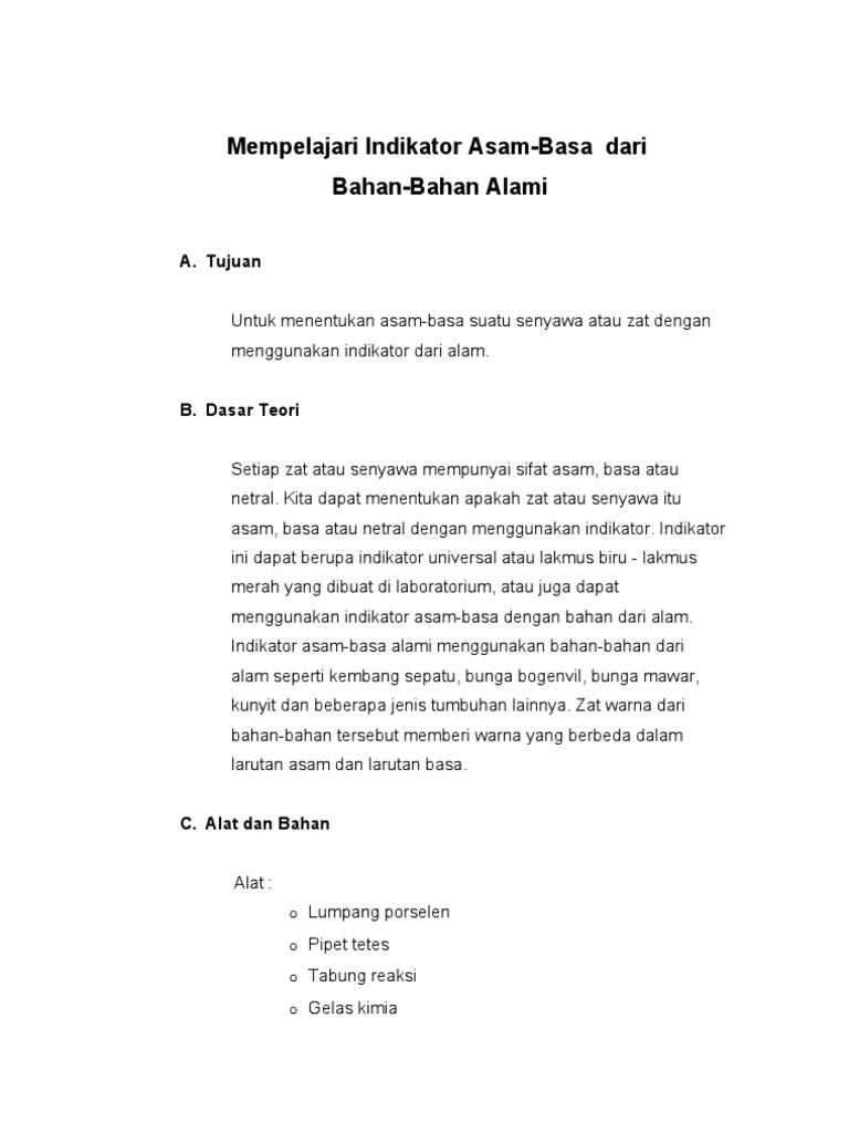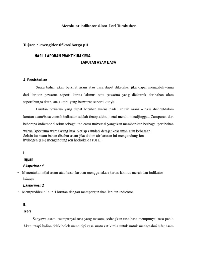 Doc Laporan Praktikum Kimia Menguji Larutan Asam Basa Menggunakan Indikator Alam Charlotte Widjojo Academia Edu