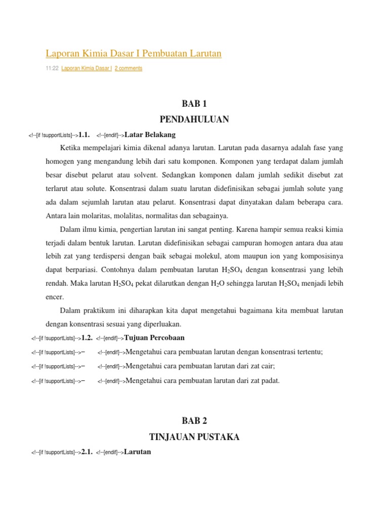 Laporan praktikum pembuatan larutan dan pengenceran. Ilma nafia mubarok 3820177131879 kelompok 2 program studi farmasi fakultas ilmu kesehatan universitas darussalam gontor 14392017. Pembuatan larutan harus dilakukan seteliti mungkin dan menggunakan perhitungan yang tepat sehingga hasil yang didapatkan sesuai dengan yang diharapkan. Waktu dan tempat praktikum aplikasi teknik laboratorium mengenai pembuatan larutan pengenceran dan pencampuran dilaksanakan pada hari rabu 24 september 2014 pukul 0800 1100 wita di laboratorium kimia analisa dan pengawasan mutu pangan program studi ilmu dan teknologi pangan jurusan teknologi pertanian fakultas.