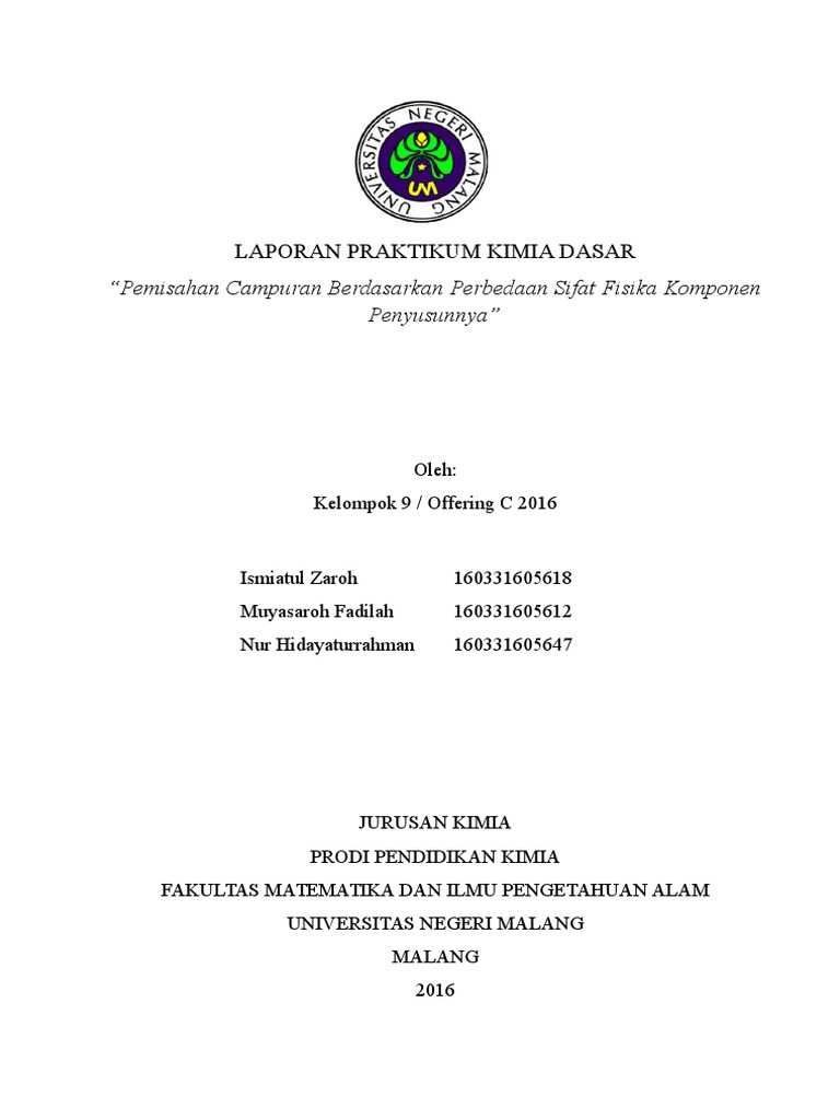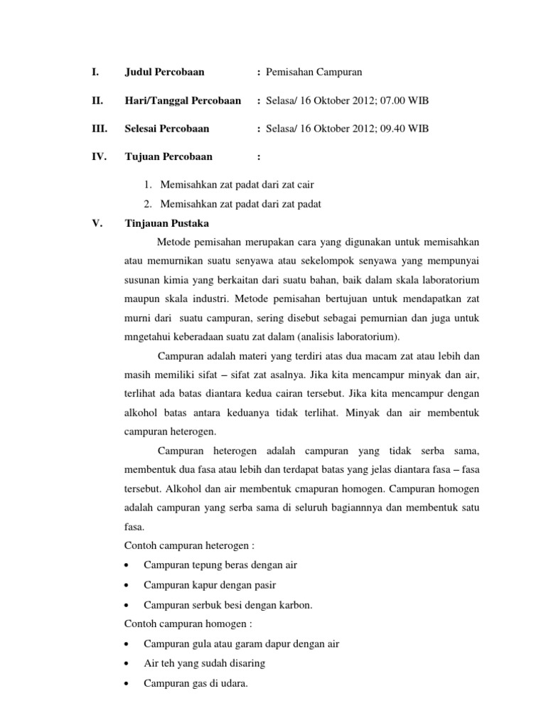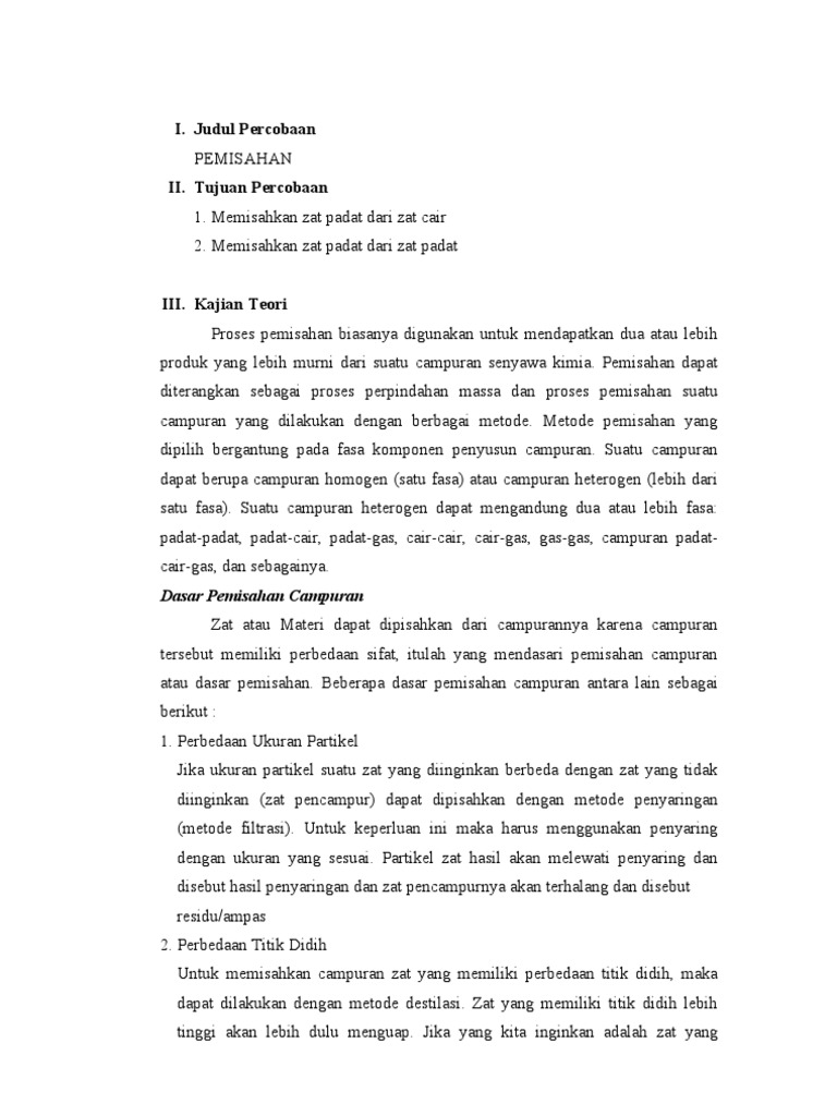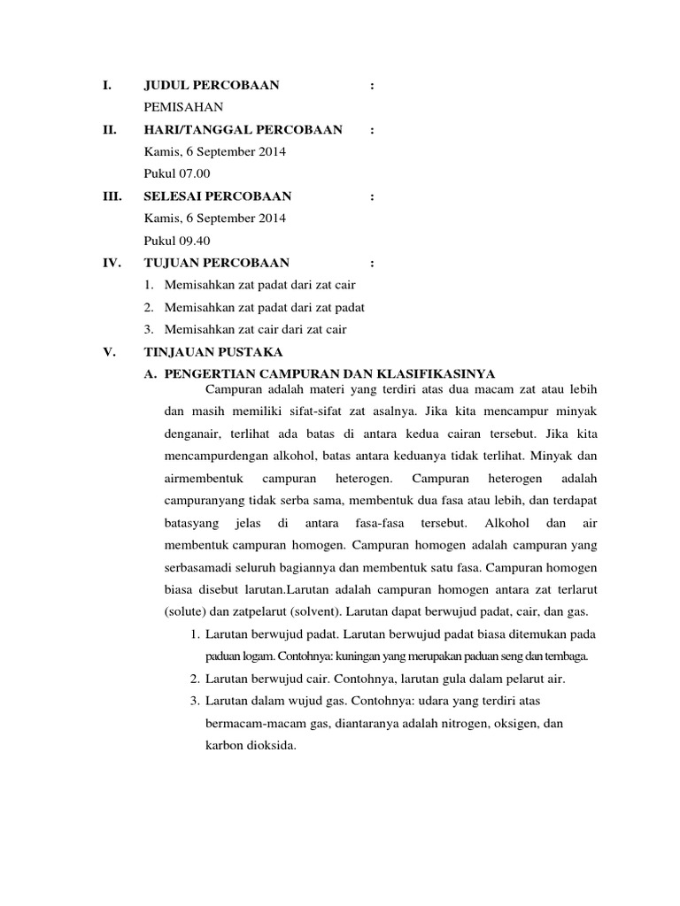 Welcome In My Blog Laporan Praktiku Kimia Dasar Pemisahan