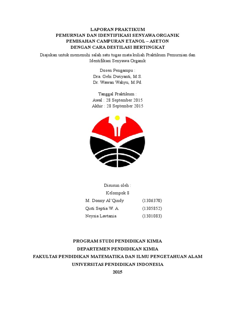 Laporan Modul 1 Laporan Praktikum Kimia Organik Ki2051 Percobaan 1 Pemisahan Dan Pemurnian Zat Cair Distilasi Titik Didih Oleh Nama Meti Fatmawati Course Hero