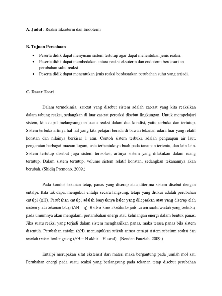 Laporan Praktikum Reaksi Eksoterm Dan Endoterm Docx Laporan Praktikum Reaksi Eksoterm Dan Endoterm Laporan Praktikum Kimia Reksi Eksoterm Dan Endoterm Course Hero
