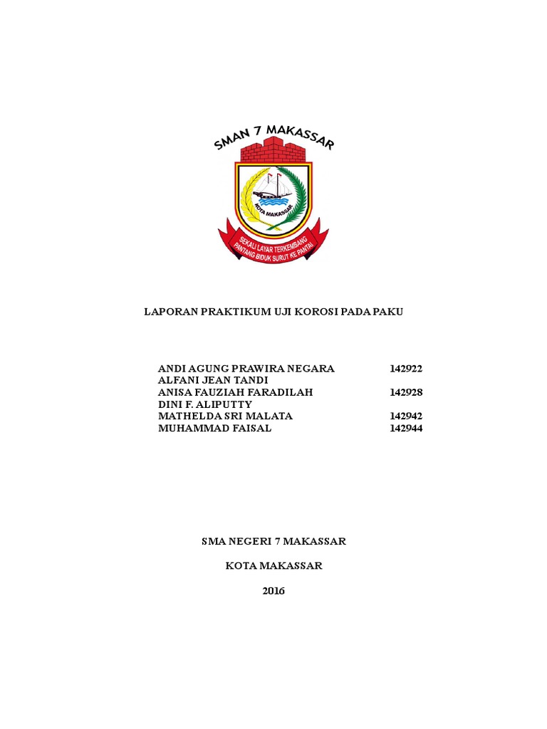 Laporan Praktikum Korosi Pada Paku Docx Laporan Praktikum Uji Korosi Pada Paku Kelompok 3 Andi Aryawijaya 07 Ardiyanti Indra Syahrir 09 Khadijah Nur Course Hero