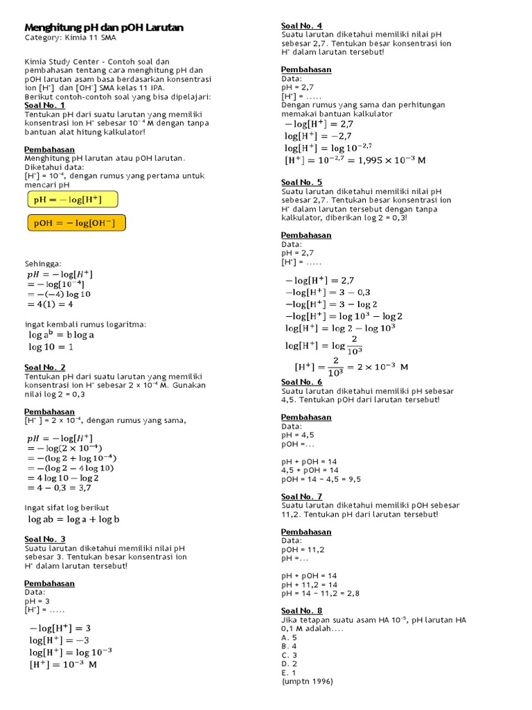 Cara Menghitung Ph Larutan Asam Basa Garam Beserta Contoh Soal Dan Pembahasan Asymmetrical Life