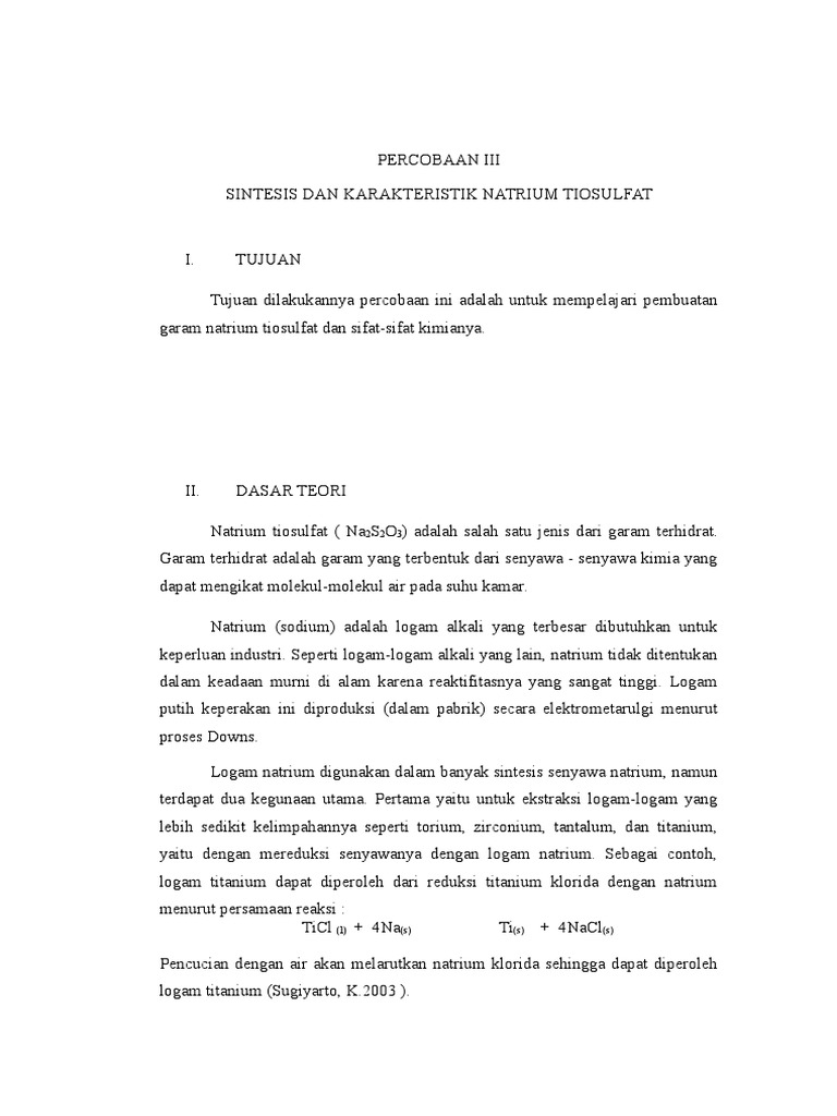 Standarisasi Iodium I2 Dengan Natrium Tiosulfat Na2s2o3 Jagad Kimia