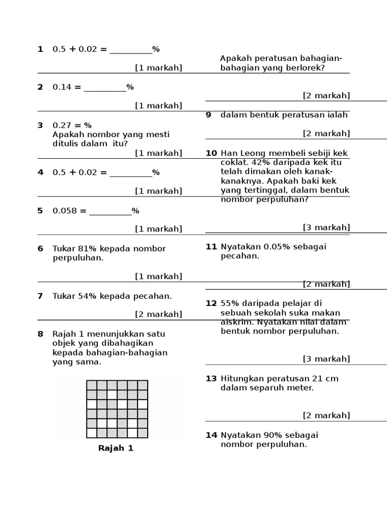 Matematik Tahun 4 5 6 Menukarkan Peratus Kepada Pecahan Dan Sebaliknya