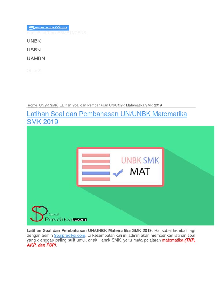 Latihan Online Soal Un Unbk Usbn Matematika Smp Mts Tahun 2020 Versi 2 Pendidikan Kewarganegaraan Pendidikan Kewarganegaraan