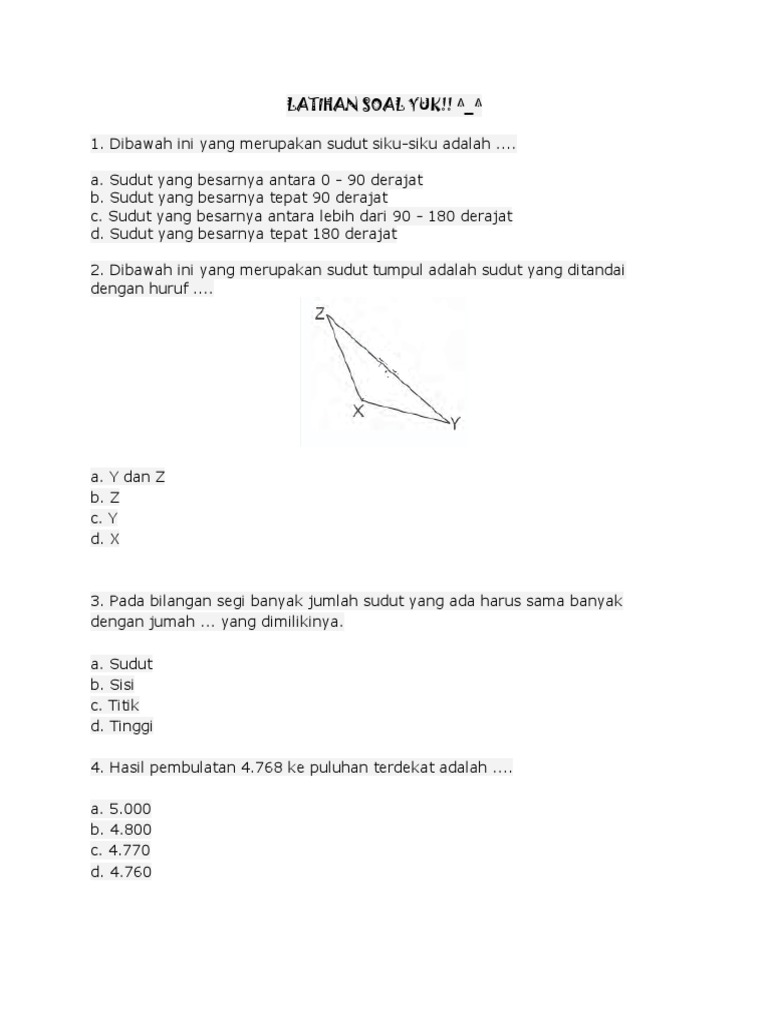 Latihan Soal Matematika Segi Banyak Kelas 4 Sd Guru Ilmu Sosial