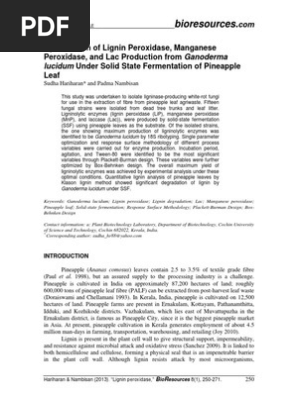Biores 08 1 0250 Hariharan N Opt Lignin Peroxidase Ssf Pineapple Leaf 3060 Coefficient Of Determination Lignin
