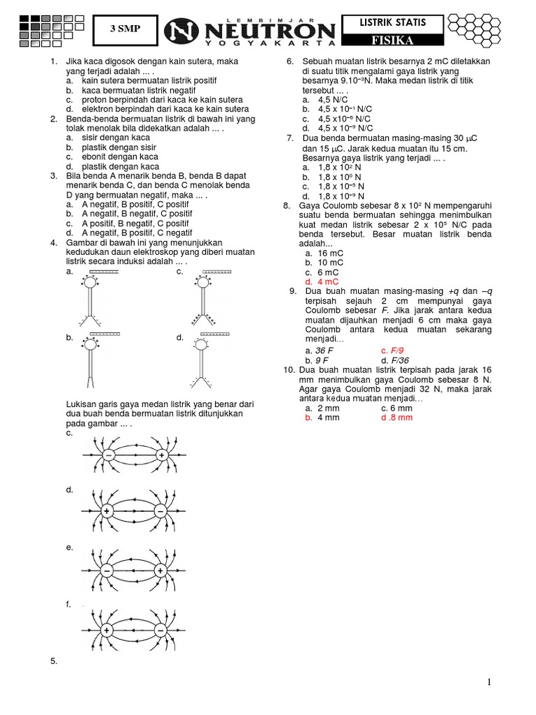 7705113 Soal Listrik Statis Smp Kelas Ix Doc Latihan I Listrik Statis 1 Bagian Dari Atom Yang Bermuatan Negatif Adalah U2026 A Positron B Proton C Course Hero