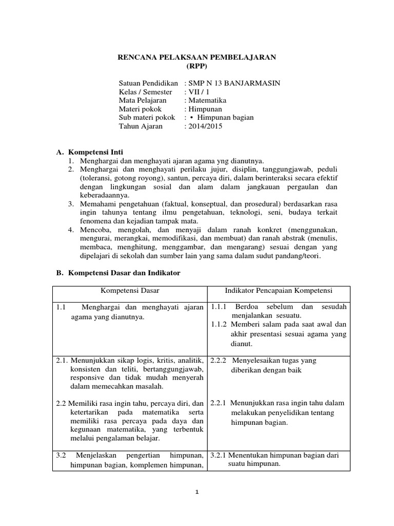 Rpp Matematika Smp Materi Himpunan Kelas 7 Smp Kurikulum 2013 Judul Situs