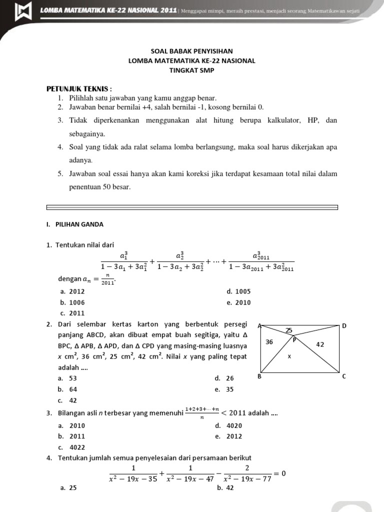 Download Kumpulan Soal Lomba Matematika Nasional Ugm Lmnas