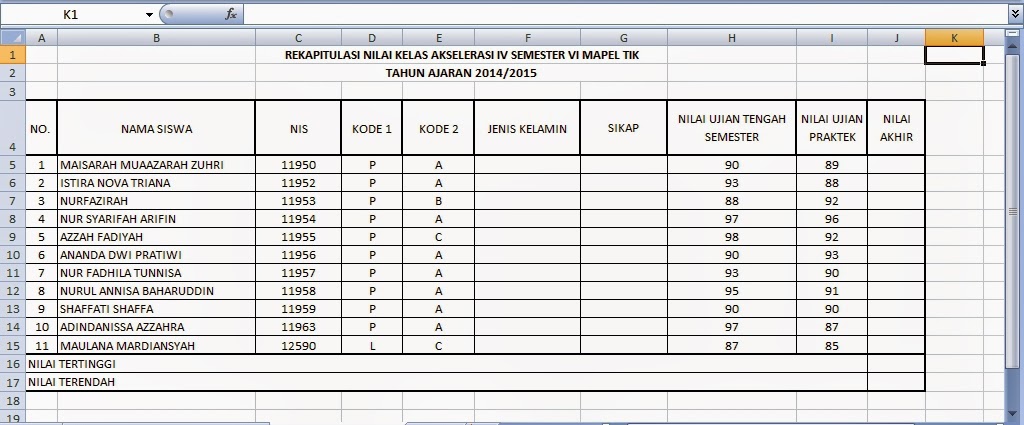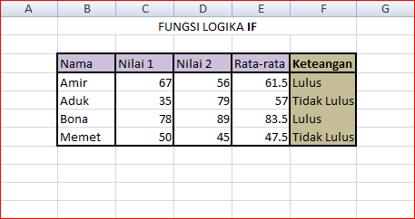 Kelas Akselerasi Iv Fungsi Logika If Tunggal Dan Ganda Pada Microsoft Excel 2010