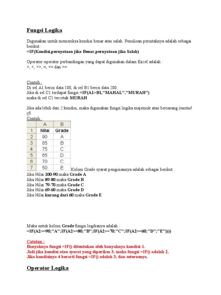 Fungsi Logika If Nbsp Fungsi Logika If Adalah Suatu Fungsi Yang Digunakan Jika Ada Pertalian Hubungan Sebab Dan Akibat Atau Ada Persyaratan Yang Harus Dipenuhi Operator Dalam Pdf Document