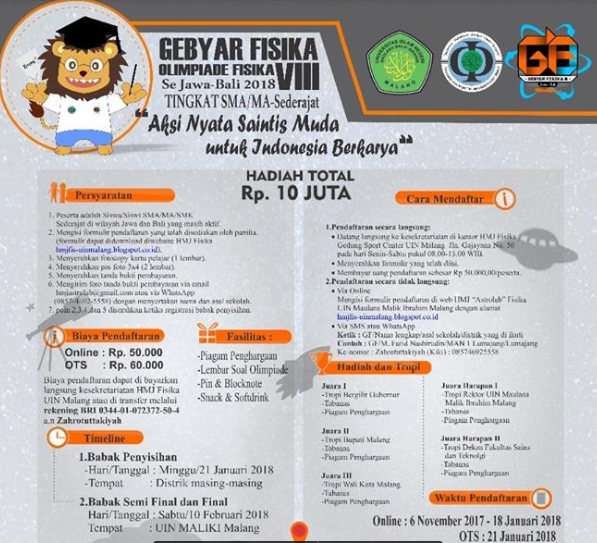 Olimpiade Fisika 2018 Di Uin Maulana Malik Ibrahim Malang Info Lomba 2020 Terbaru