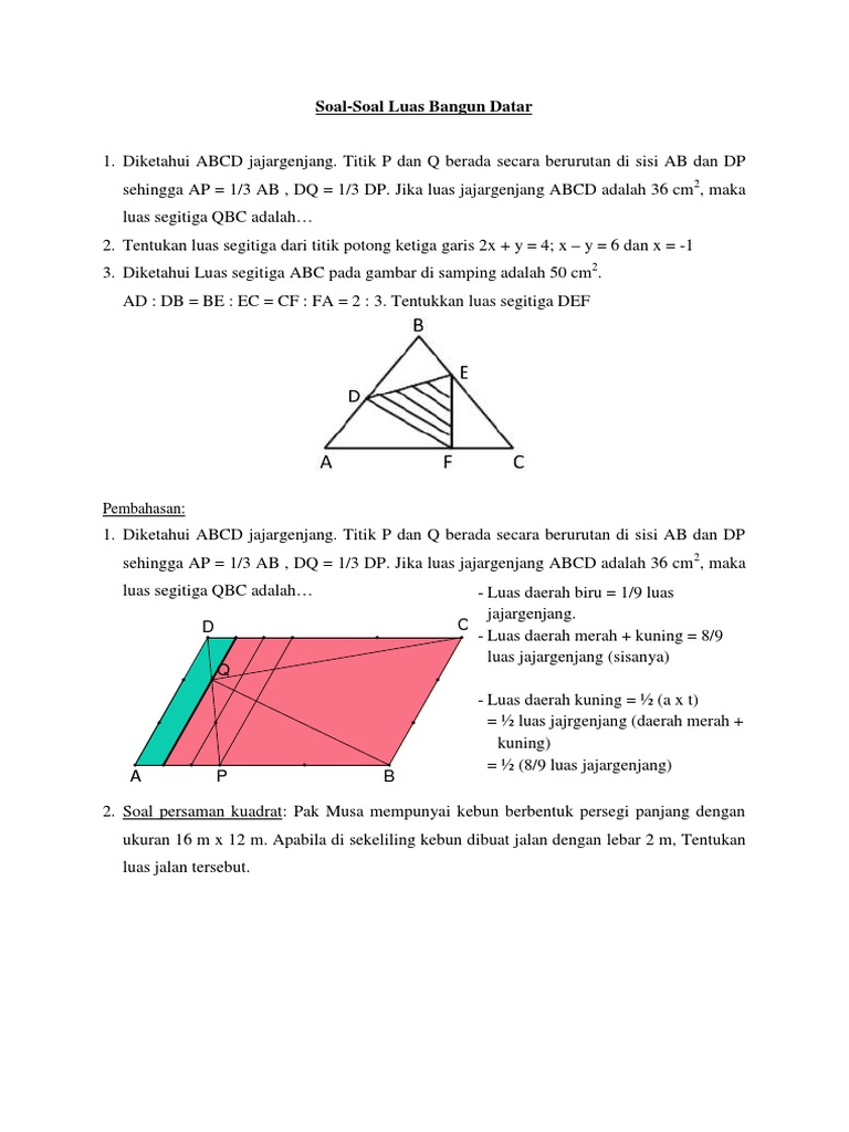 Luas Dan Keliling Bangun Datar 1 Soal Kelas 6 Sd 1 Rumus Luas Persegi Panjang Adalah A B C D Pdf Free Download