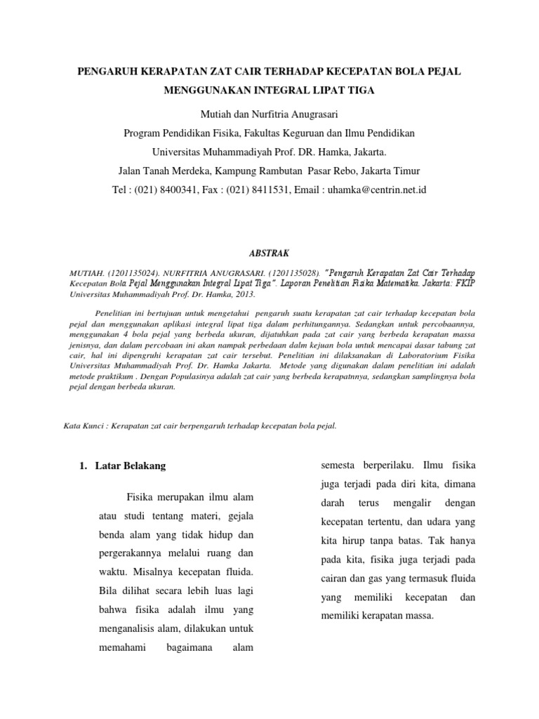 Pengaruh Kerapatan Zat Cair Terhadap Kecepatan Bola Pejal Menggunakan Integral Lipat Tiga