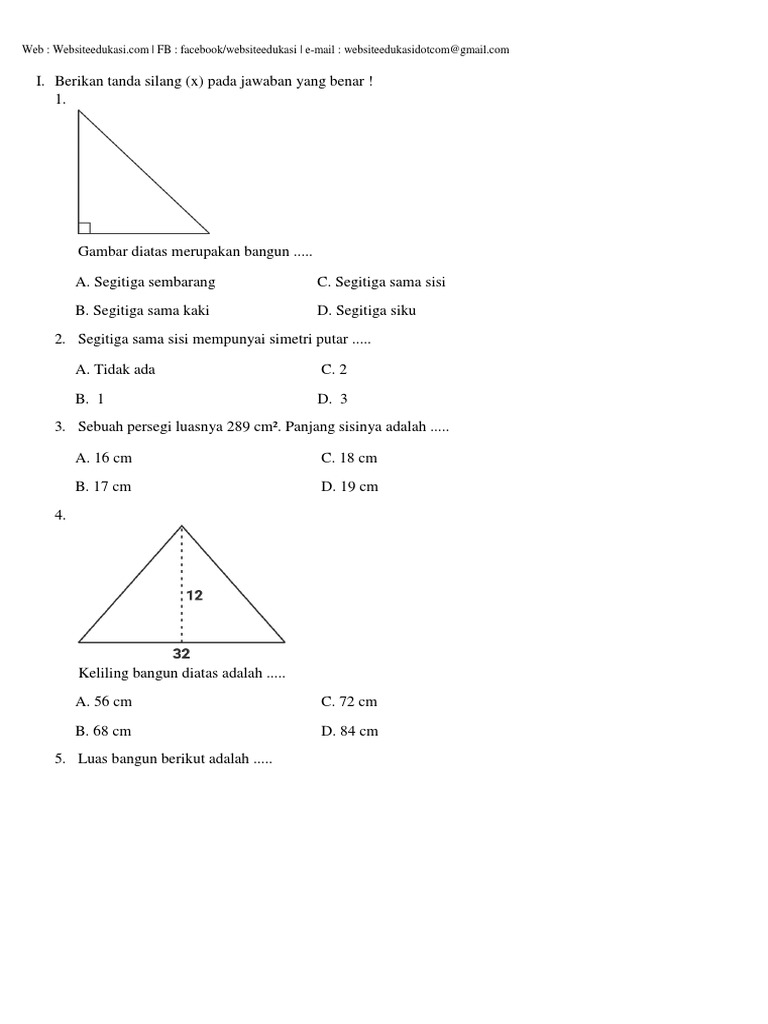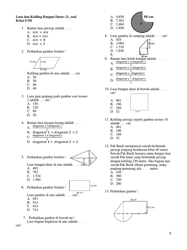 Luas Dan Keliling Bangun Datar 1 Soal Kelas 6 Sd 1 Rumus Luas Persegi Panjang Adalah A B C D Pdf Free Download